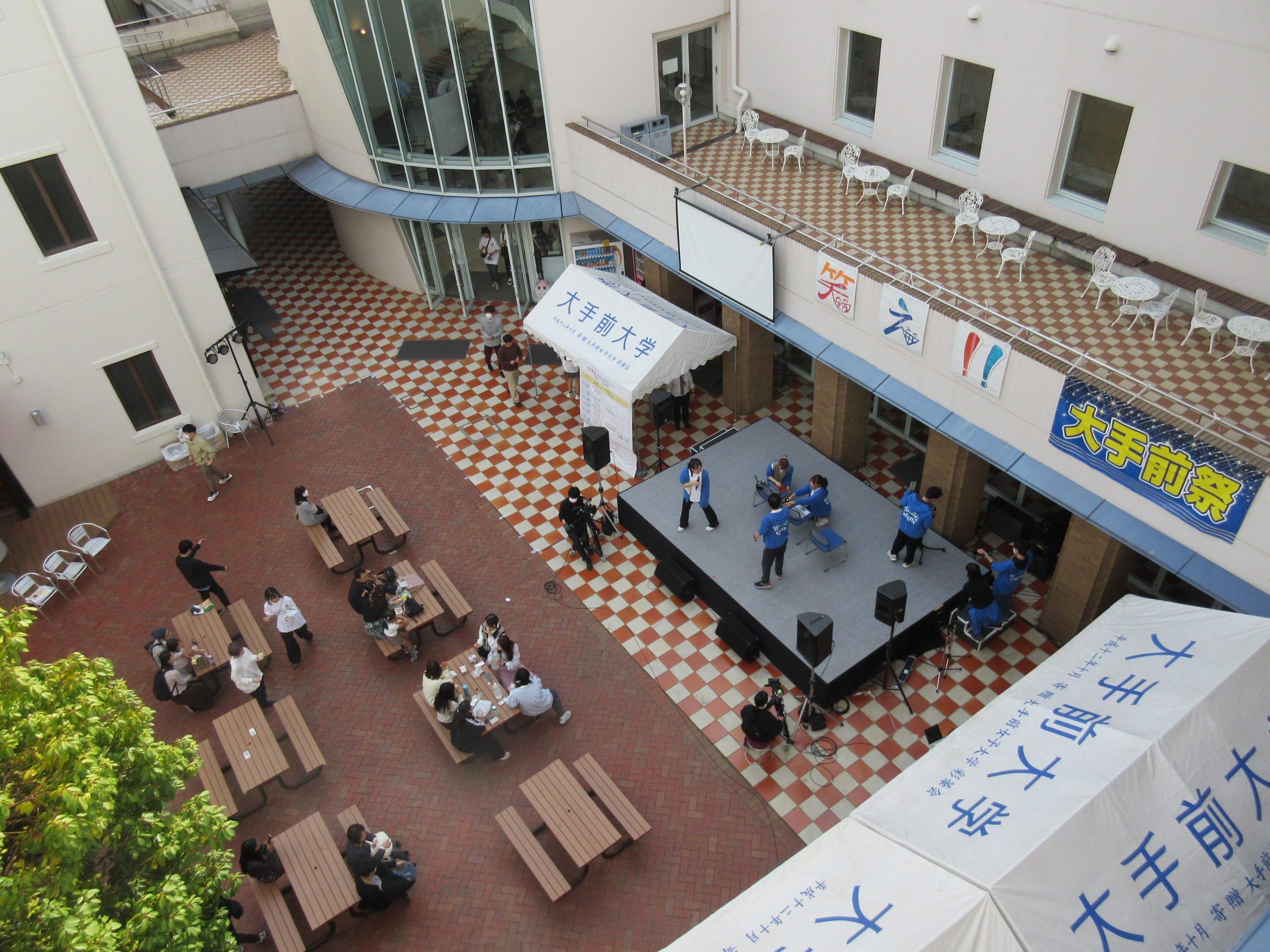 中庭ステージで開催されるステージと、父のような眼差しで見守る背中をパシャリ!